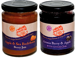 We have two flavours - Apple & Sea Buckthorn Berry Reduced Sugar Jam and Aronia Berry & Apple with Ginger Reduced Sugar Jam