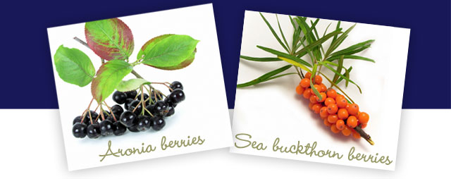 Aronia berries (aka chokeberries) have some of the highest levels of natural antioxidants of any fruit. More than even blueberries and pomegranate, aronia berries are the richest known fruit source of anthocyanins. They also contain vitamins B2, B6, E, C and folic acid.
